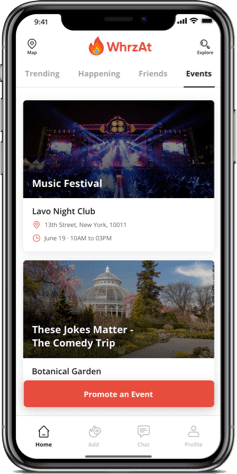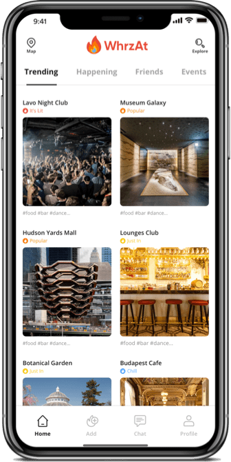 With WhrzAt, you can share events, meet new people, make new friends, upload photos of your favourite spots, and more.